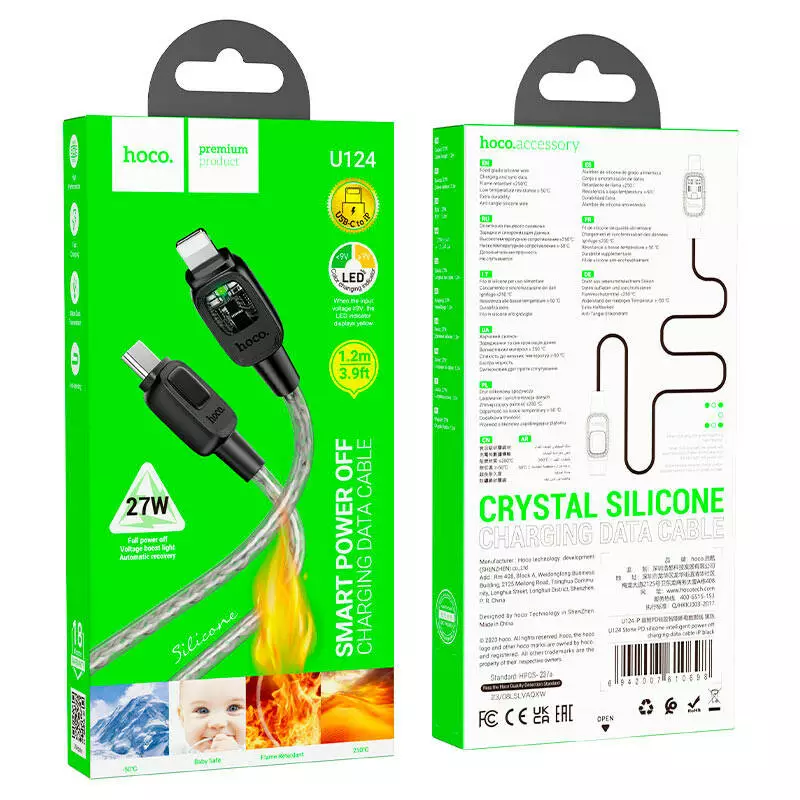 Кабель Hoco U124, Type-C-Lighting, 27W, довжина 1.2м, Black/Gray,