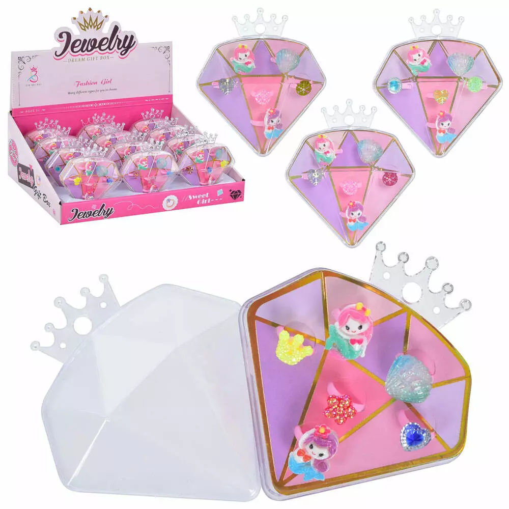 Фотография 1 товарной позиции интернет-магазина детских игрушек www.smarttoys.com.ua Каблучка A096-2 русалонька, 6 шт. в футлярі, мікс видів, 12 шт. в диспл., 31,5-23,5-11,5 см.