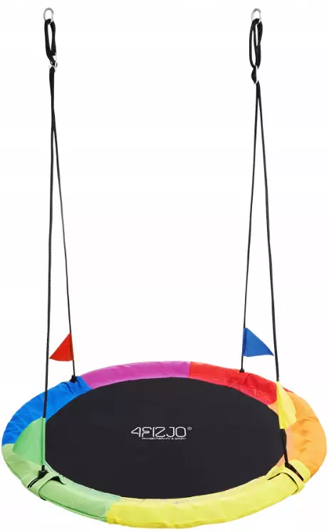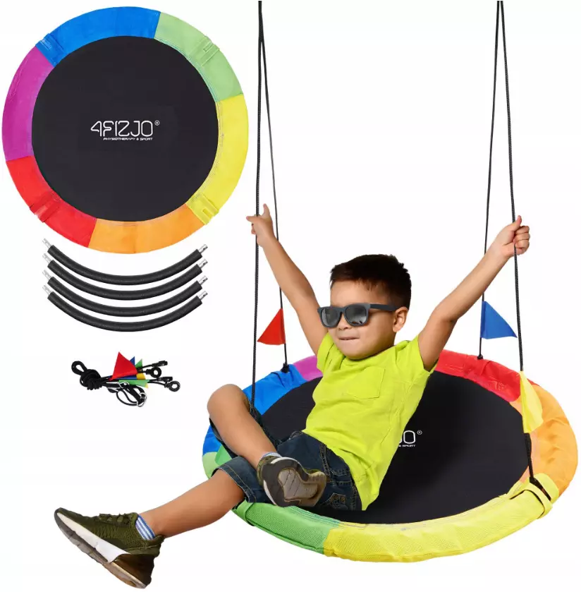 Садовые качели для детей от 4FIZJO - это так называемая модель "гнездо аиста". Это плоская модель, на которой ваш малыш может сидеть, лежать или стоять на коленях. Это металлические качели, а их элементы защищены мягким пенополиуретаном. Благодаря материалу сиденья и канатов, прочность качелей составляет 160 кг. Если вы хотите, чтобы старший ребенок качался вместе с младшим, нет проблем - прочность качелей позволяет это сделать. Еще одним очень важным элементом является размер сиденья - он составляет 100cm❗️.