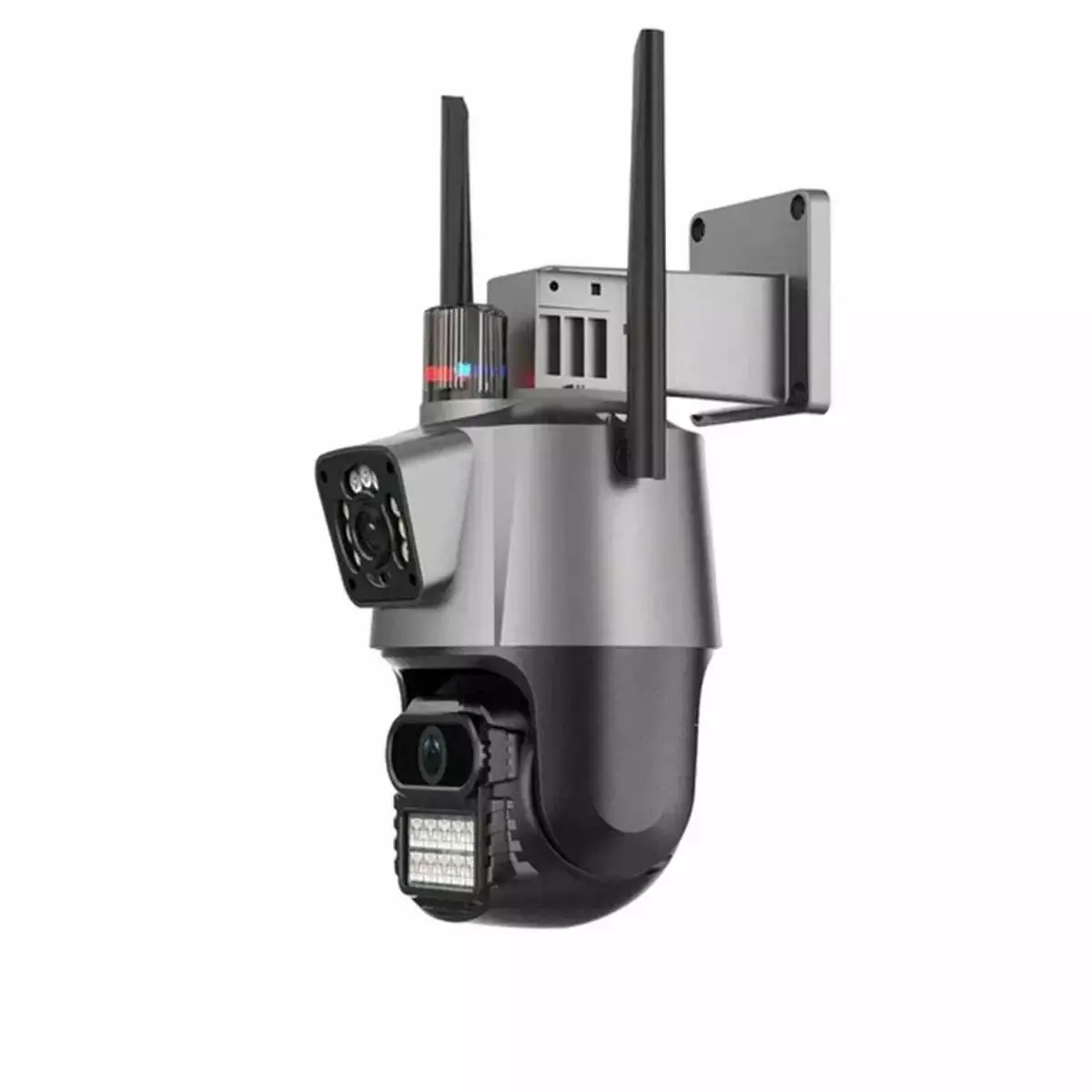 Модель оснащена двома незалежними об’єктивами по 3 мегапікселі кожен, що формують окремі відеопотоки для паралельного спостереження. Поворотний механізм забезпечує налаштування кутів огляду відповідно до розташування проїзду або об’єкта. Для роботи в темний час доби використовується комбінований нічний режим із інфрачервоною та LED-підсвіткою, що дозволяє зберігати видимість при низькому рівні освітлення.