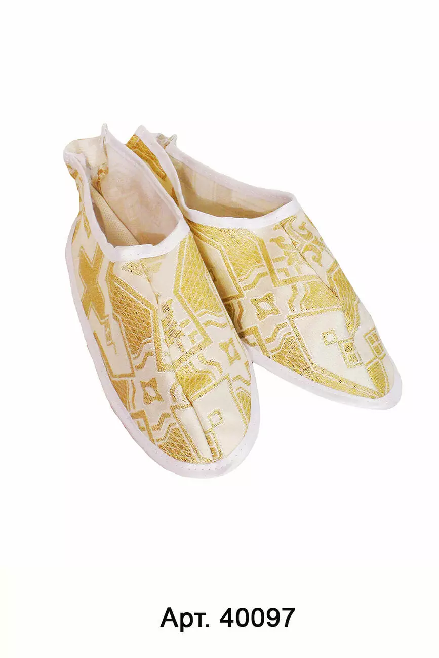Капці з парчі задник на гумці, кольори білі з золотом, білі зі сріблом, розміри в асортименті 36-40.
