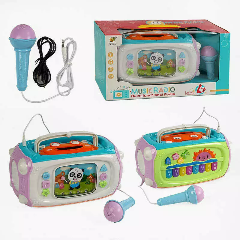 Караоке 6621 (12/2) підсвічування, піаніно, мелодії, пісні, звуки тварин, барабани, мікрофон, озвучування англійською, в коробці