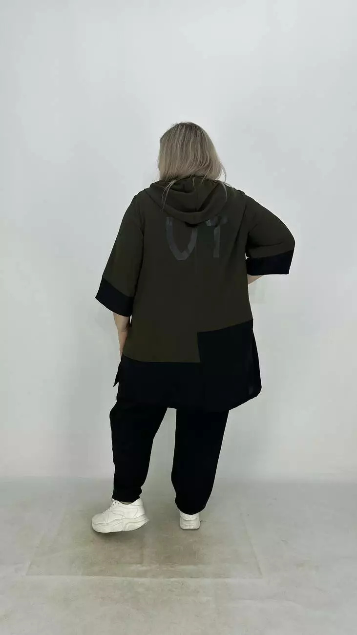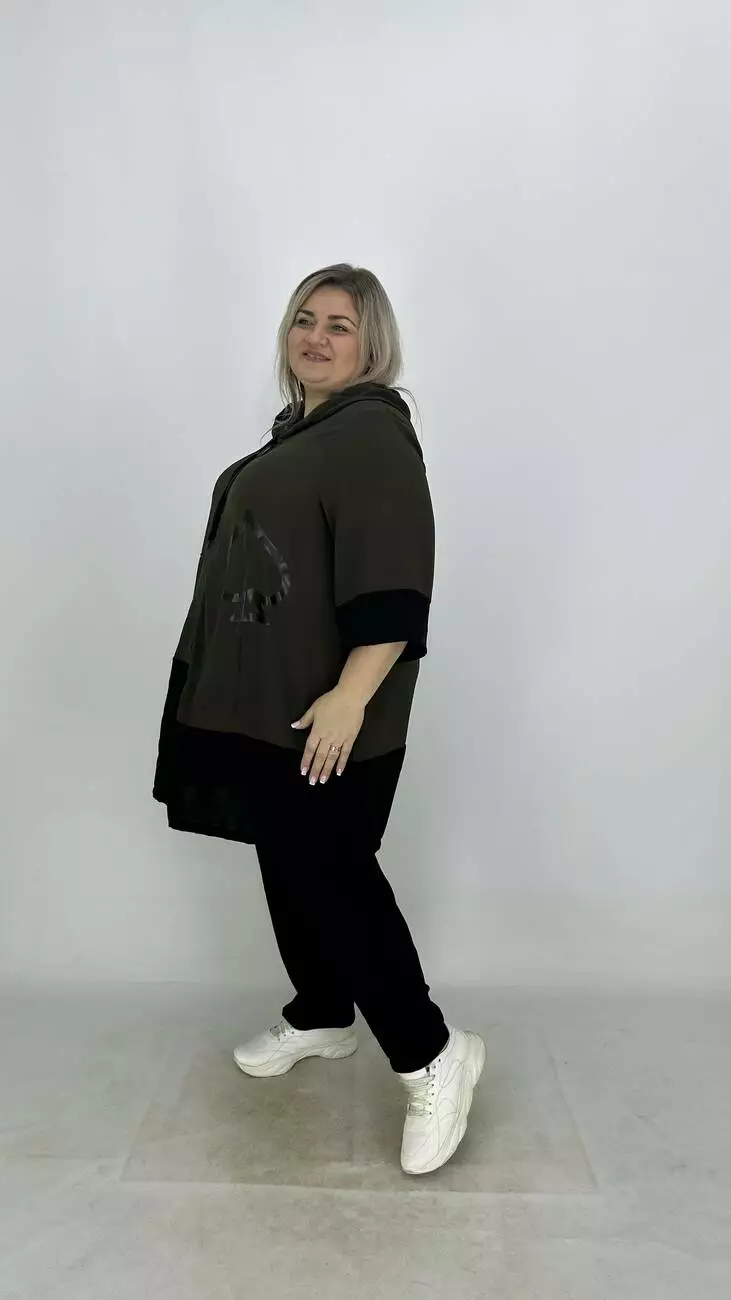 70-72 об'єм грудей 138-144; обсяг талії 140–150; об'єм стегон 150-160; довжина виробу 87; довжина рукава 44; ширина рукава 50-52