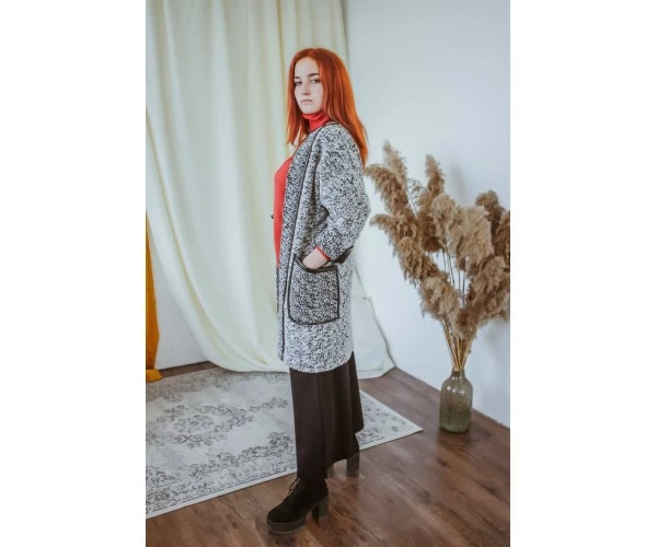 Кардиган - незаменимый и универсальный элемент в женском гардеробе. Модель Л 793-20 имеет выразительные карманы с кожаной отделкой.