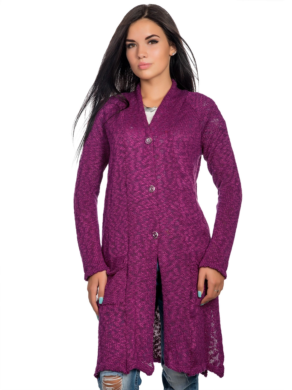 Стильный кардиган прямого силуэта. Выполнен кардиган из высококачественной, мягкой и приятной пряжи. По бокам разрезы, дополнен вывязанными карманами. Изделие застегивается на 3 пуговицы. Этот великолепный кардиган выполнен в широком ассортименте цветовой палитры. Кардиган создаёт чувство уюта и тепла.