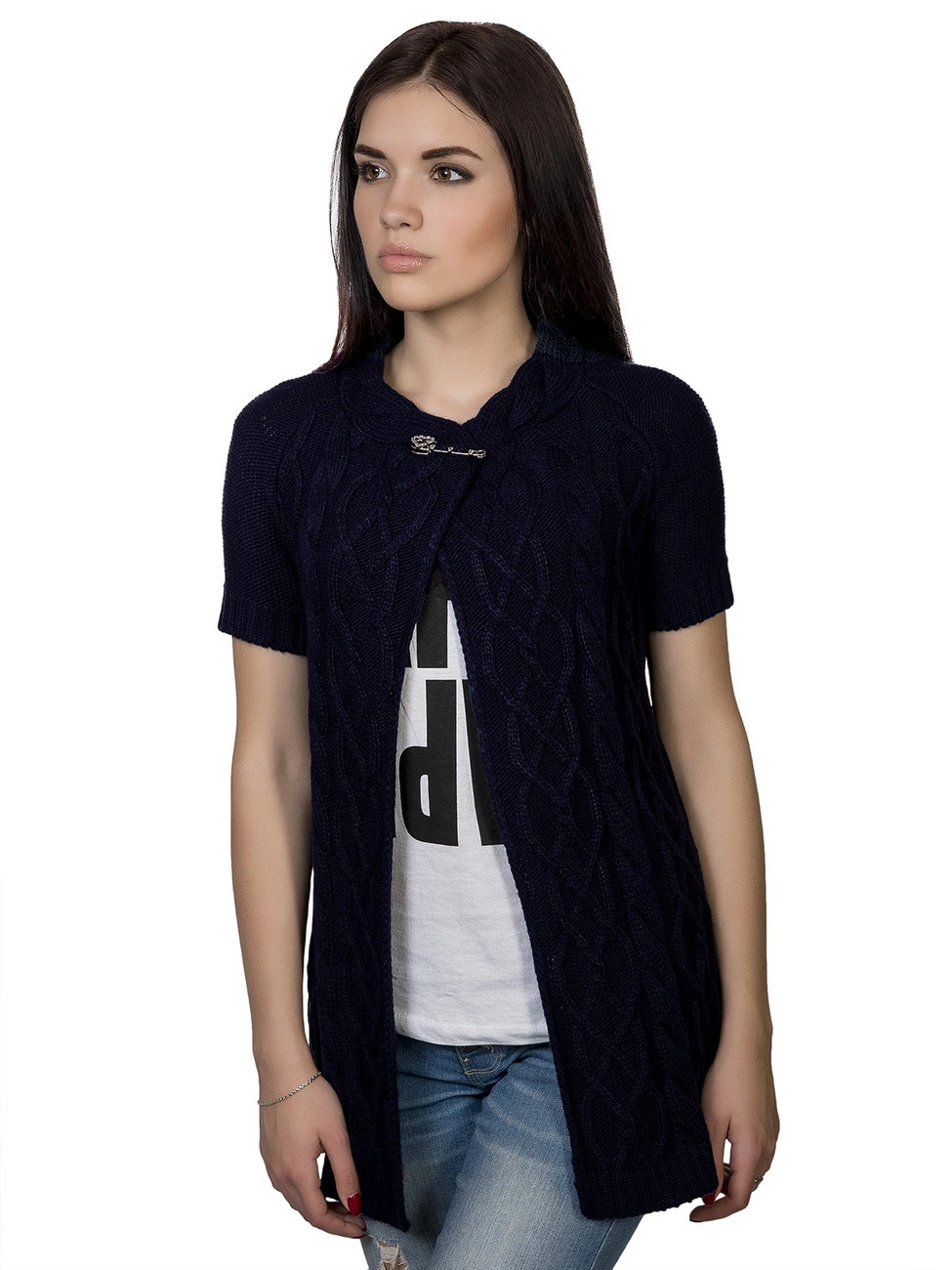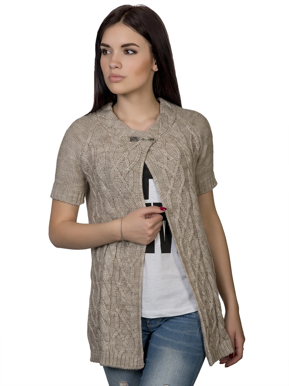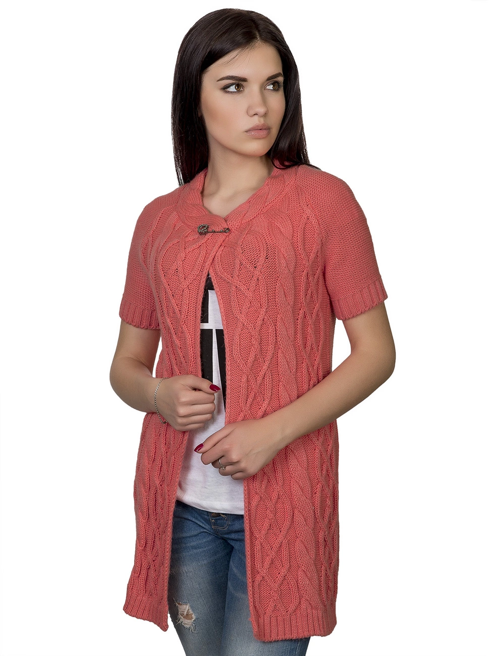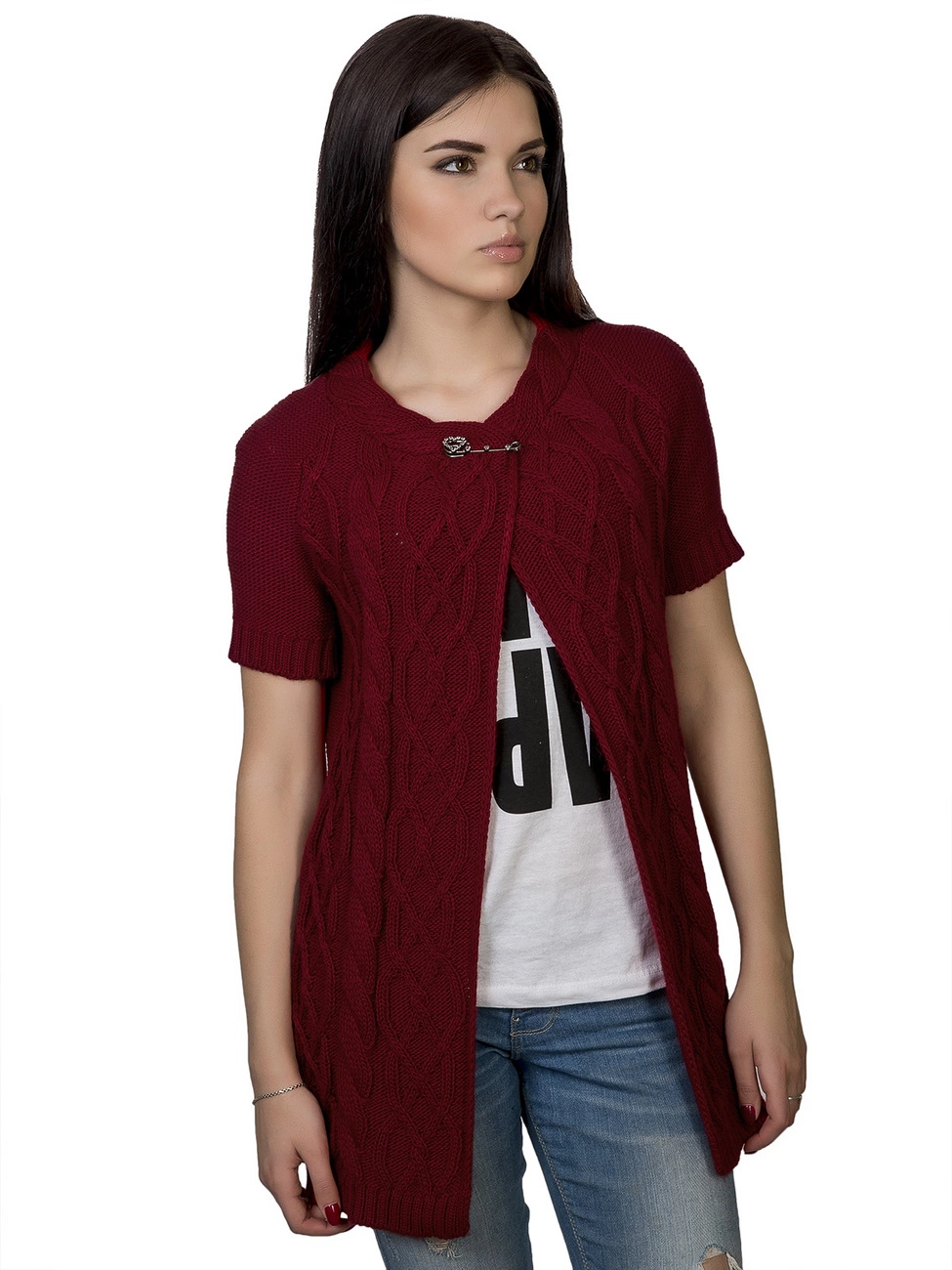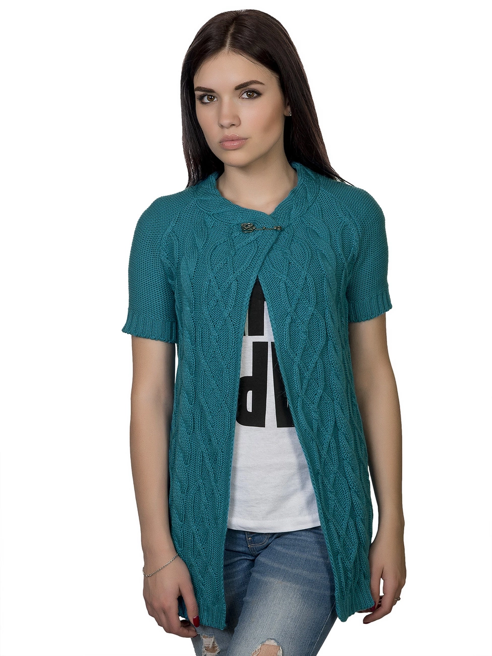 Теплый, стильный вязаный кардиган, прямого силуэта, короткий