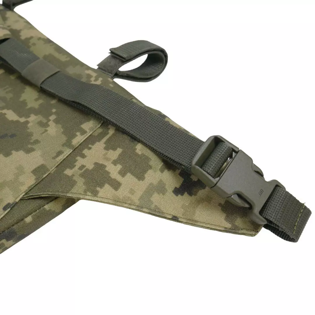 - также можно фиксировать сиденье с помощью специальных строп на липучке на систему Molle на плитоноске или пояс РПС;