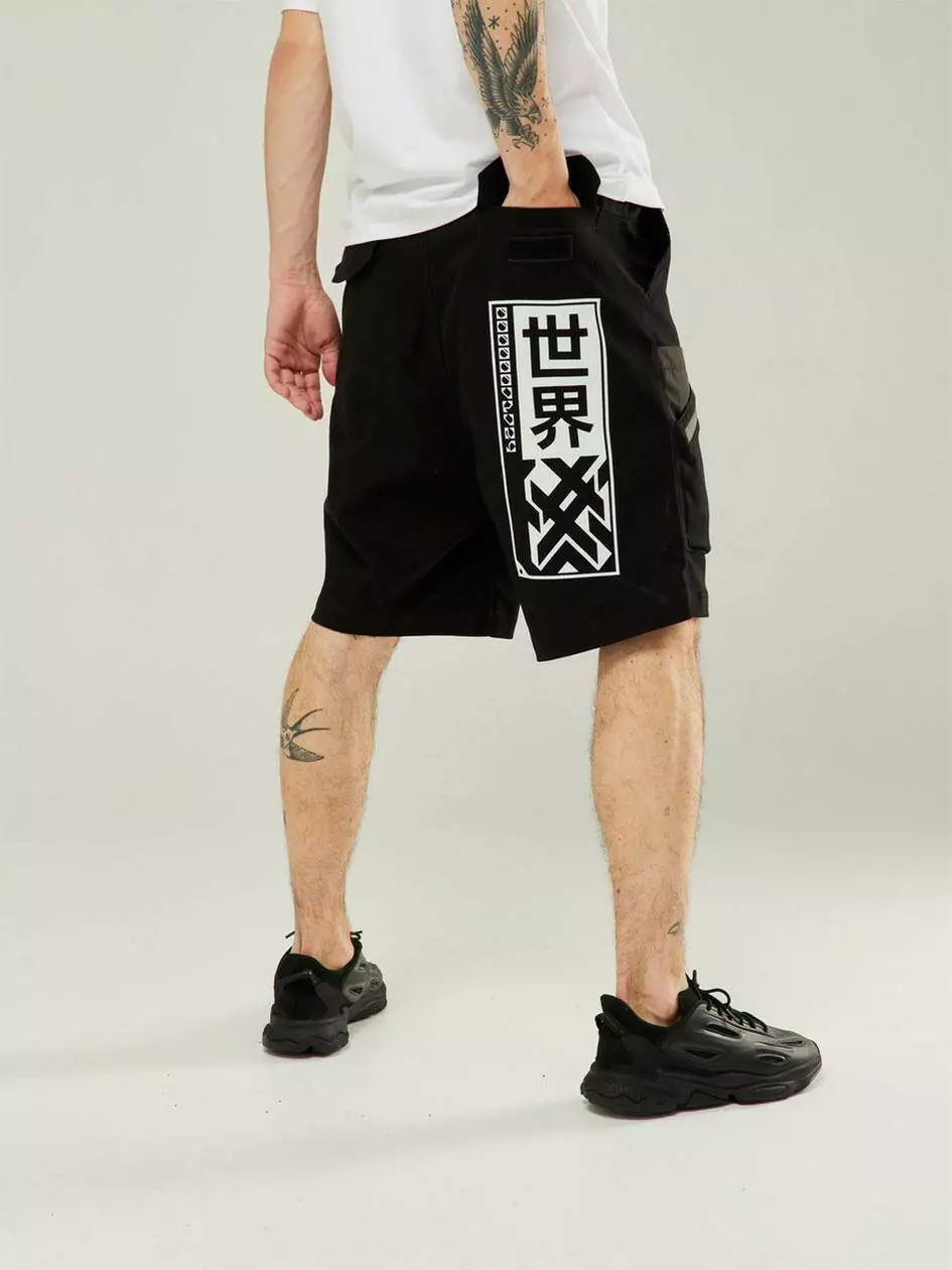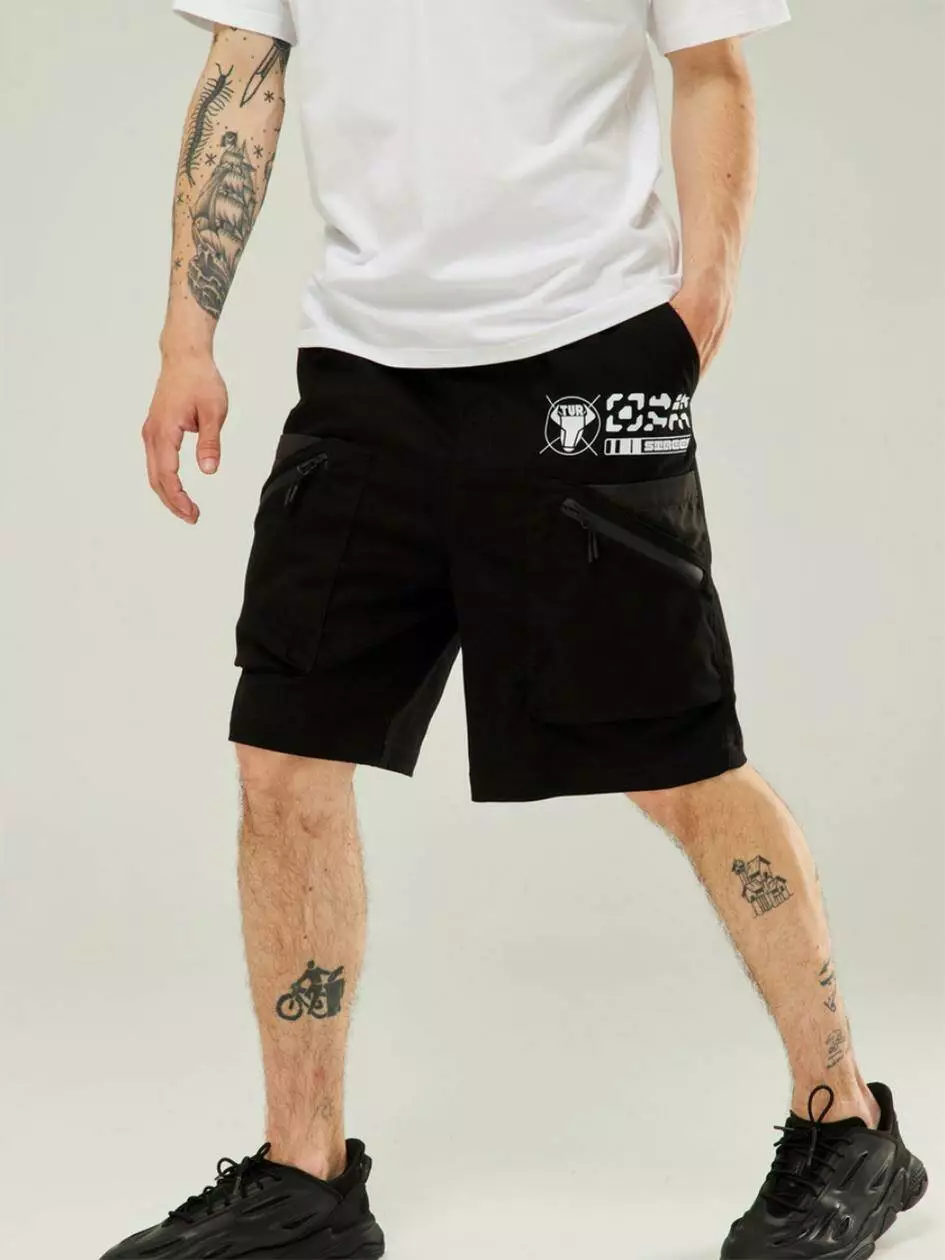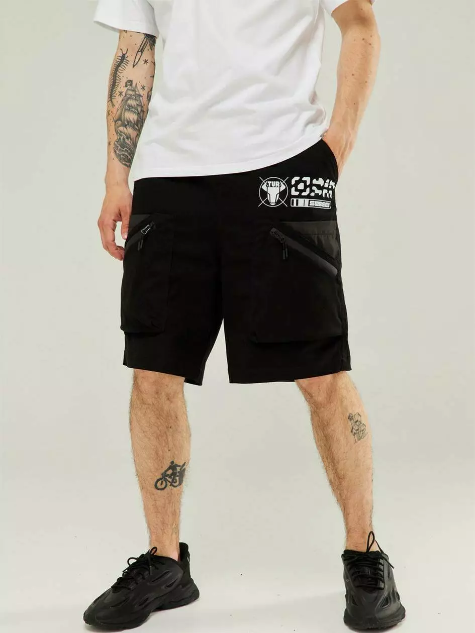 Шорти карго з низькою вільною посадкою. В поясі вбудована резинка