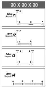 возможность сделать 4 варианта: L-образный размером 90*90 или