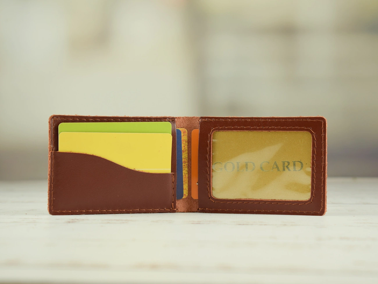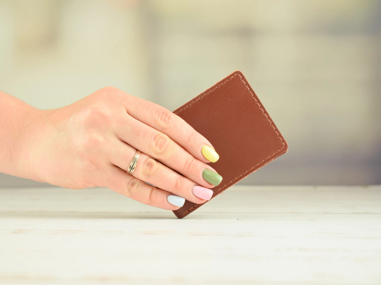 Картхолдер складається з чотирьох відділів для карток та одного прозорого відділення для паспорту або прав.