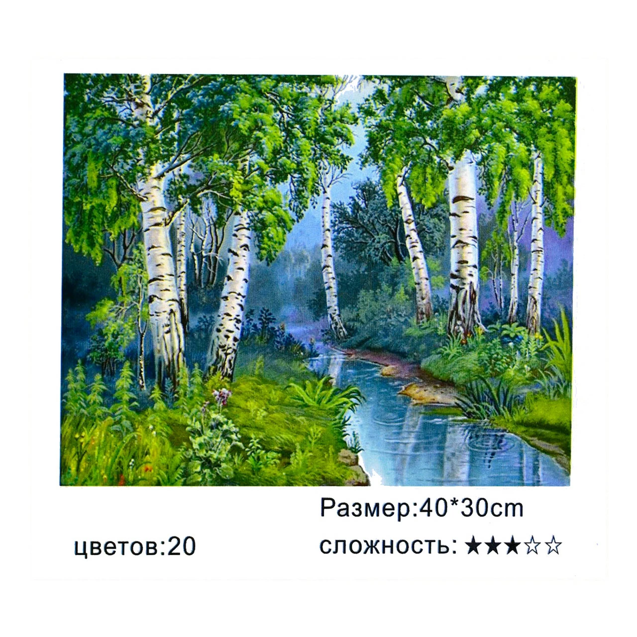 Тип картины - пейзаж; Сложность - 3; Материал холста - хлопок; Размер холста - 40 х 30 см. Краски в наборе - есть; Упаковка - коробка. Комплектация: