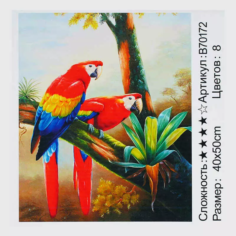 Картина за номерами + Алмазна мозаїка B 70172 (30) "TK Group", 40х50 см, "Папуги", в коробці