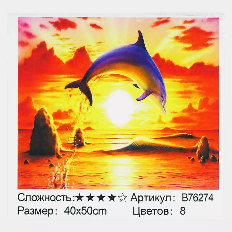 Картина за номерами + Алмазна мозаїка B 76274 (30) "TK Group", 40х50 см, "Дельфін", в коробці
