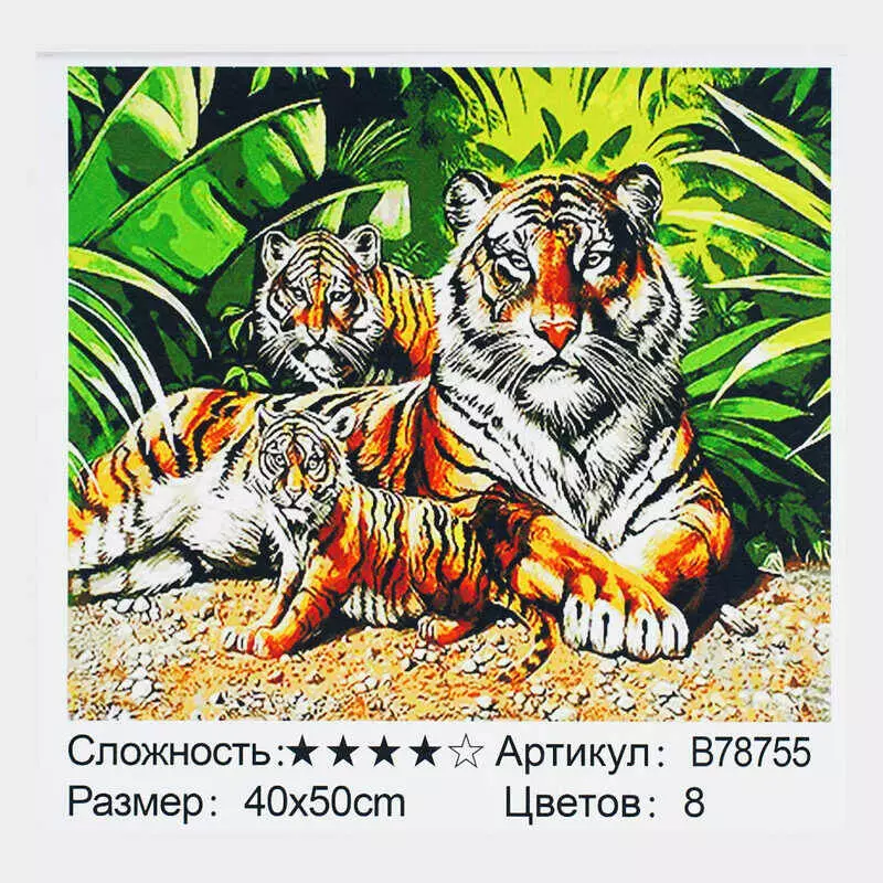 Картина за номерами + Алмазна мозаїка B 78755 (30) "TK Group", 40х50 см, "Сімейство тигрів", в коробці
