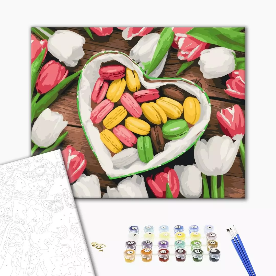 В набір входить: - бавовняне полотно на дерев'яному підрамнику з нанесеною пронумерованою схемою майбутньої картини - 3 пензлики різної товщини - акрилові пронумеровані фарби - кріплення до стіни для готової картини - картина запакована в плівку Зверніть увагу, що кольори можуть несуттєво відрізнятися від показаних на фото!