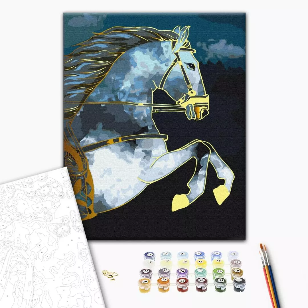 Фотография 1 товарной позиции интернет-магазина детских игрушек www.smarttoys.com.ua Картина за номерами: Скакун в сутінках з золотою фарбою 40х50