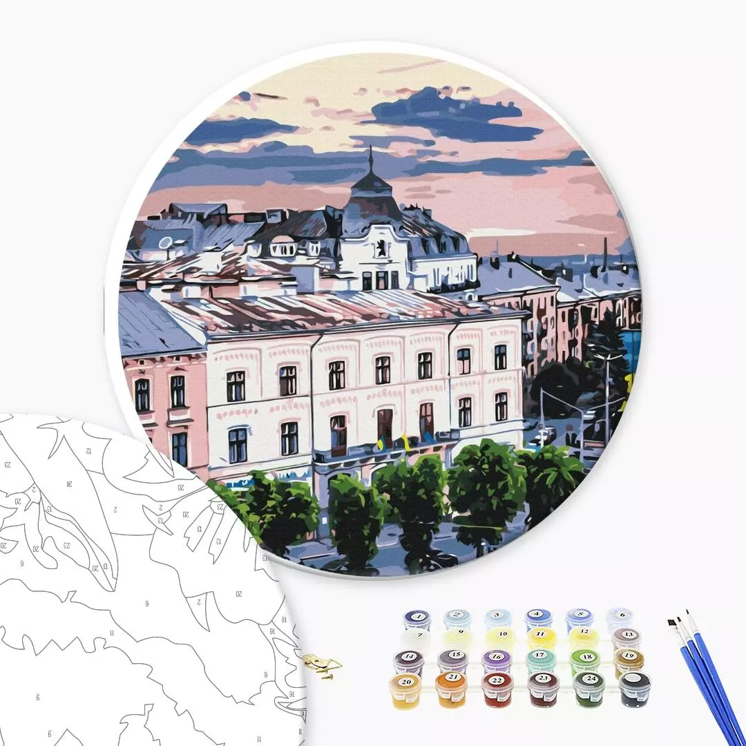 В набір входить: полотно на круглому дерев'яному підрамнику з
