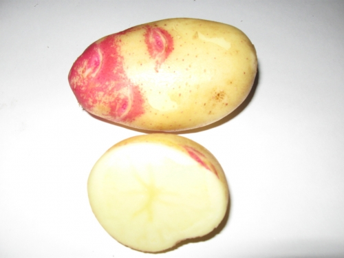 Картофель сорт Пикассо – это среднеспелый сорт (125-140 дней).Высокоурожайный, засухоустойчивый сорт столового назначения, выведенный в Голландии. Картофель имеет желтоватый цвет. Иногда на кожуре присутствуют красные пятнышки. Ценится сорт прежде всего за то, что дает действительно богатый урожай – 15-19 клубней под одним кустом. Основное количество клубней большого размера, довольно ровные, без изъянов. Сорт имеет отменный нежный вкус, быструю провариваемость. Мякоть нежно-кремового цвета. Содержание крахмала в картофеле до 19%. Хорошо переносит повышенную температуру воздуха и почвы во время вегетации. Скручивание листьев среднеустойчивое.«Пикассо» болеет редко, устойчив к вирусным заболеваниям, а также к картофельной нематоде, фузариозу, фитофторозу, парше обыкновенной, раку. Клубни тоже поражаются чрезвычайно редко. Товарность картофеля – 80-95 %. Лежкость - 87-90%.