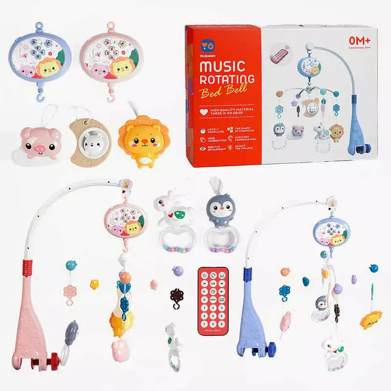 Карусель RT 668-20 (24) 2 кольори, пульт д/к, проєктор, таймер, мелодії, звуки природи, забавні звуки, 5 підвісок-брязкальце, в коробці