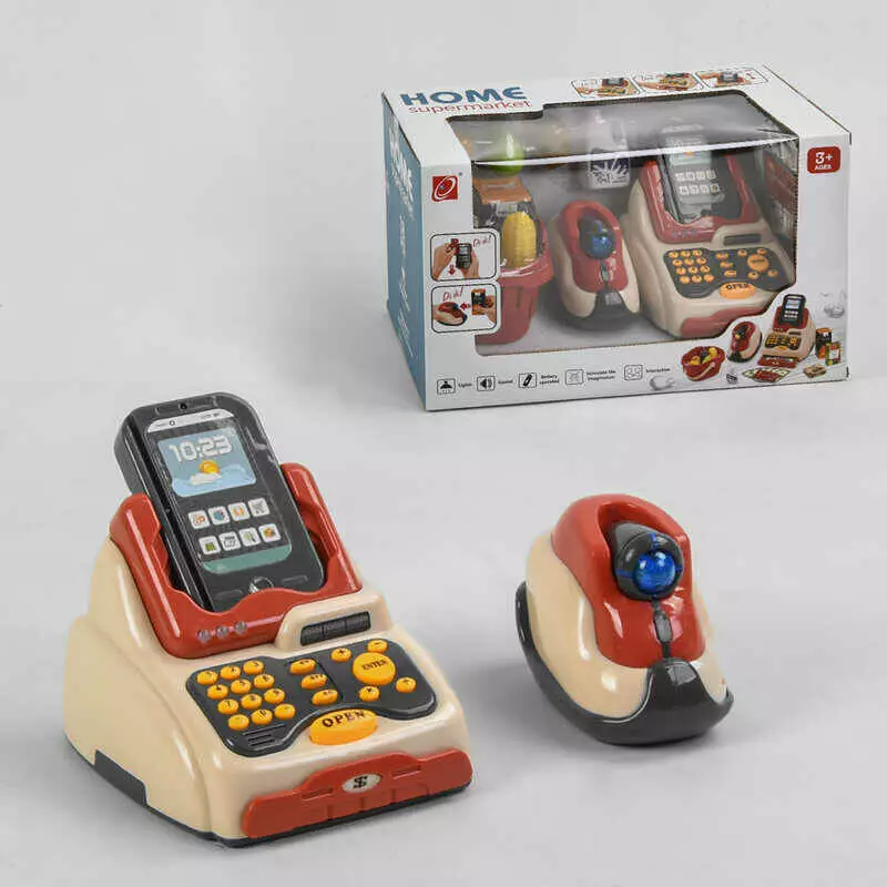 Касовий апарат 668-93 (24) на батарейках, підсвічування, 18 предметів, звук, сканер, термінал, продукти, в коробці