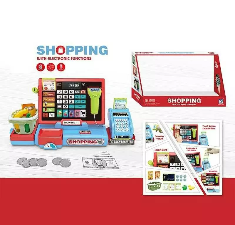 Касовий апарат 818-389 (16/2) калькулят., сканер, стрічка, термінал, кошик, прод., картка, звуки, підсвічування, рухомі елементи, в коробці