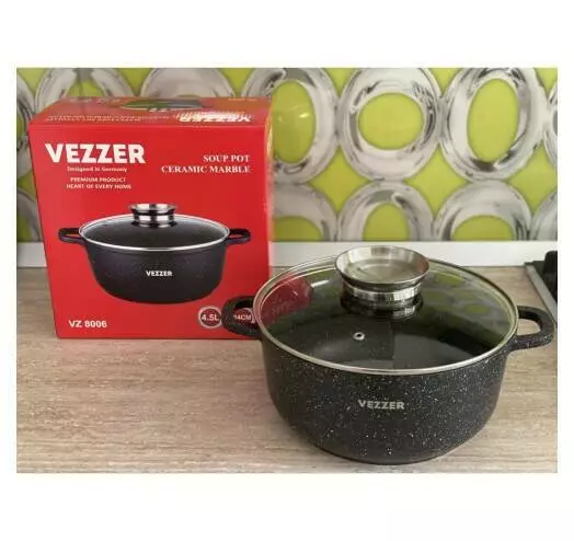 Каструля Vezzer VZ8040 4,5л з кришкою і мармуровим покриттям