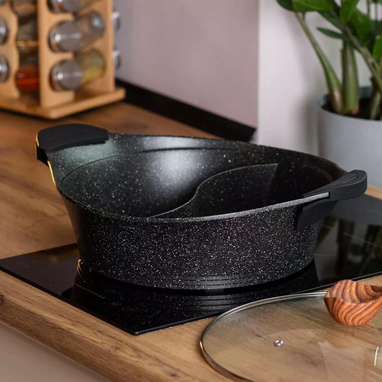 Каструля з роздільником для шабу-шабу MGC алюмінієва 4 л з антипригарним покриттям, чорний
