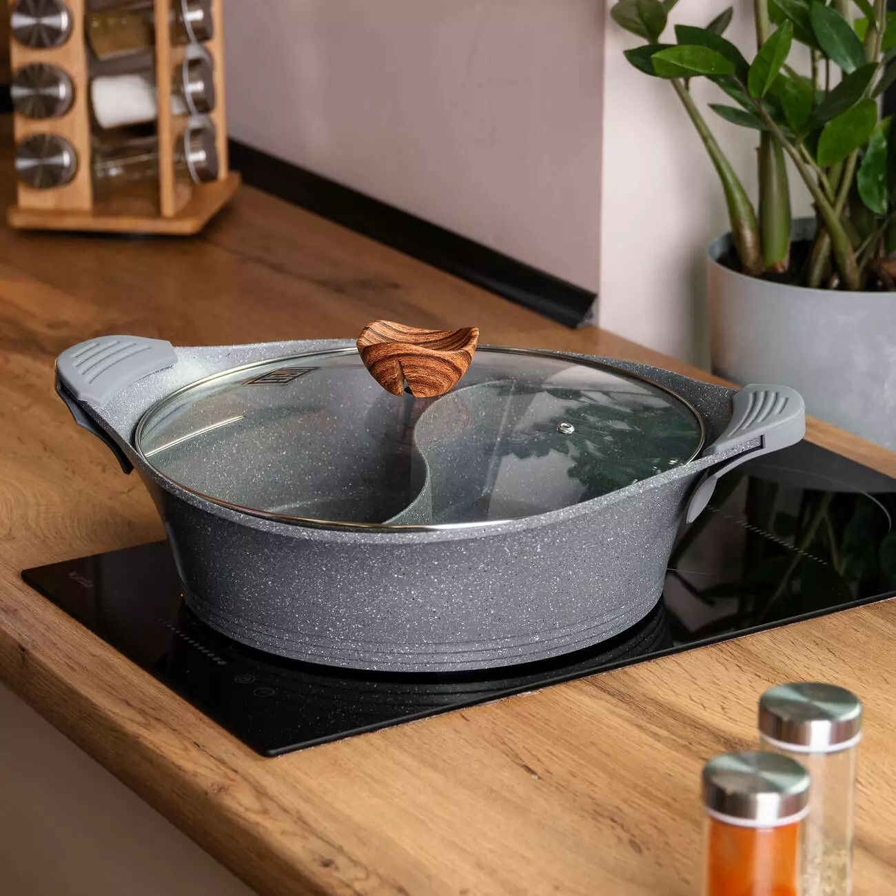 Каструля з роздільником для шабу-шабу MGC алюмінієва 4 л з антипригарним покриттям, сірий