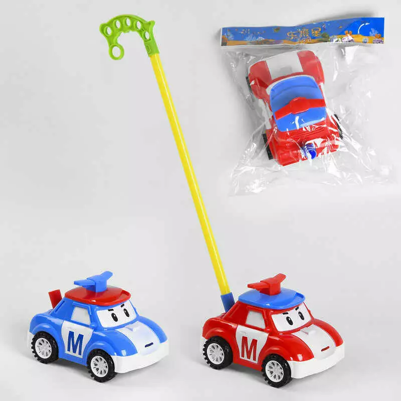 Каталка 198-20 (72/2) "Машинка" 2 кольори, на палиці, з пищалкою, в пакеті