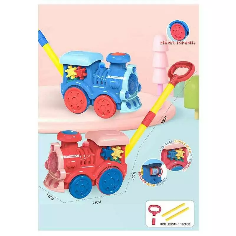 Каталка 8525 (48/2) “Паровозик”, на паличці, рухомі шестерні, шнурочок та кільце, в пакеті