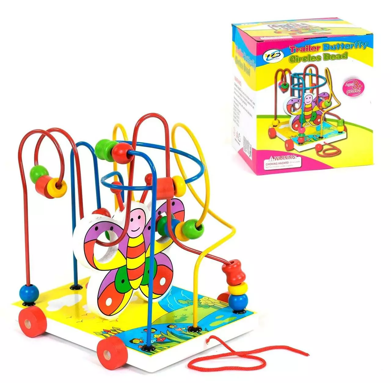проволоки с бусинками. Платформа на колесиках, ее можно катать на