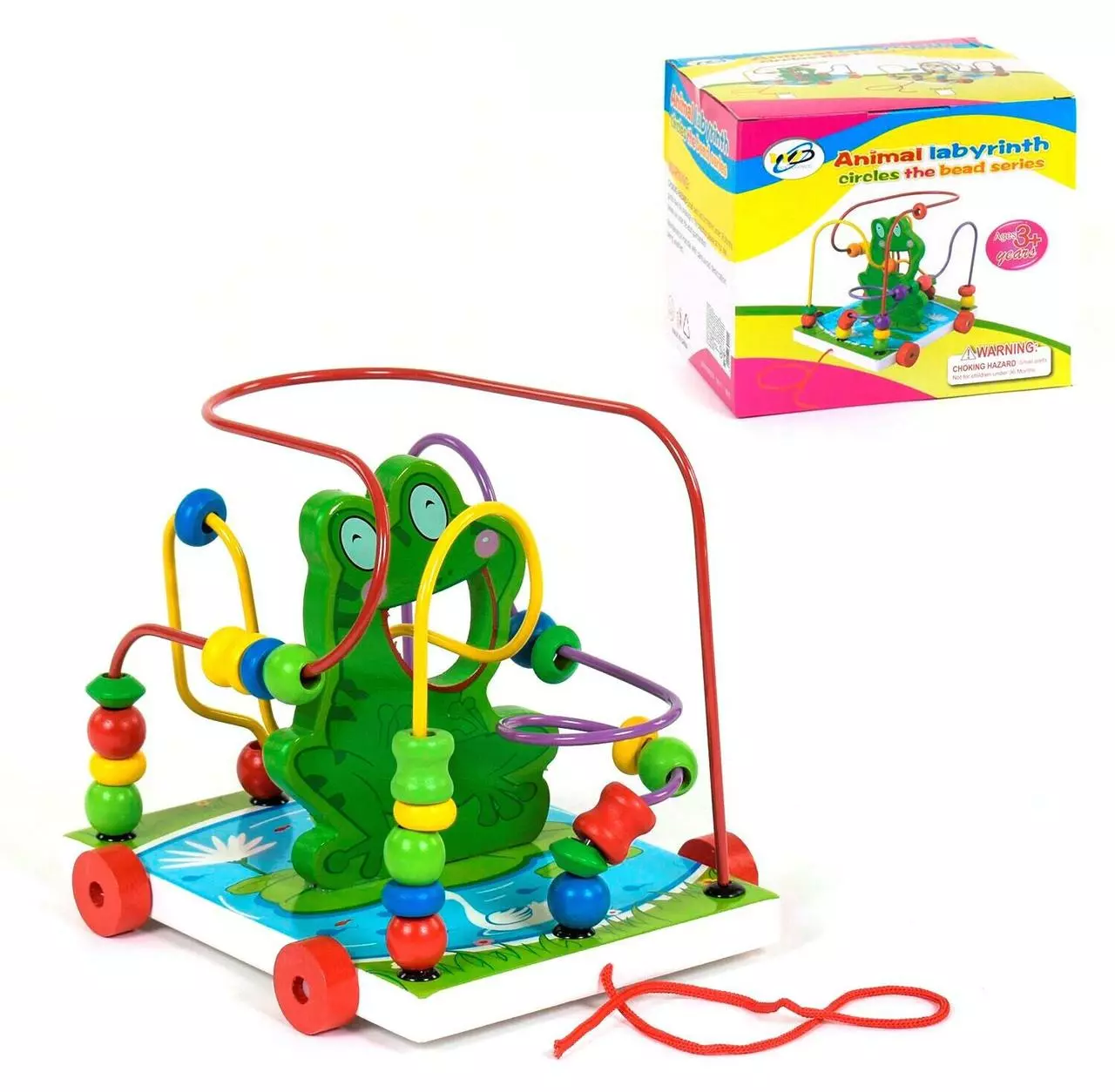 Пальчиковый лабиринт Kimi развивающая игра для самых маленьких. Игра представляет собой деревянную платформу с яркими изображениями, на которой закреплены изогнутые металлические проволоки с бусинками. Платформа на колесиках, ее можно катать на веревочке как машинку. Ход игры с таким лабиринтом может быть разнообразным. При помощи данной игрушки ребёнка можно познакомить со счетом, научить различать цвета и формы. Малыш будет развивать свои тактильные ощущения, тренировать логическое и пространственное мышление, мелкую моторику рук.