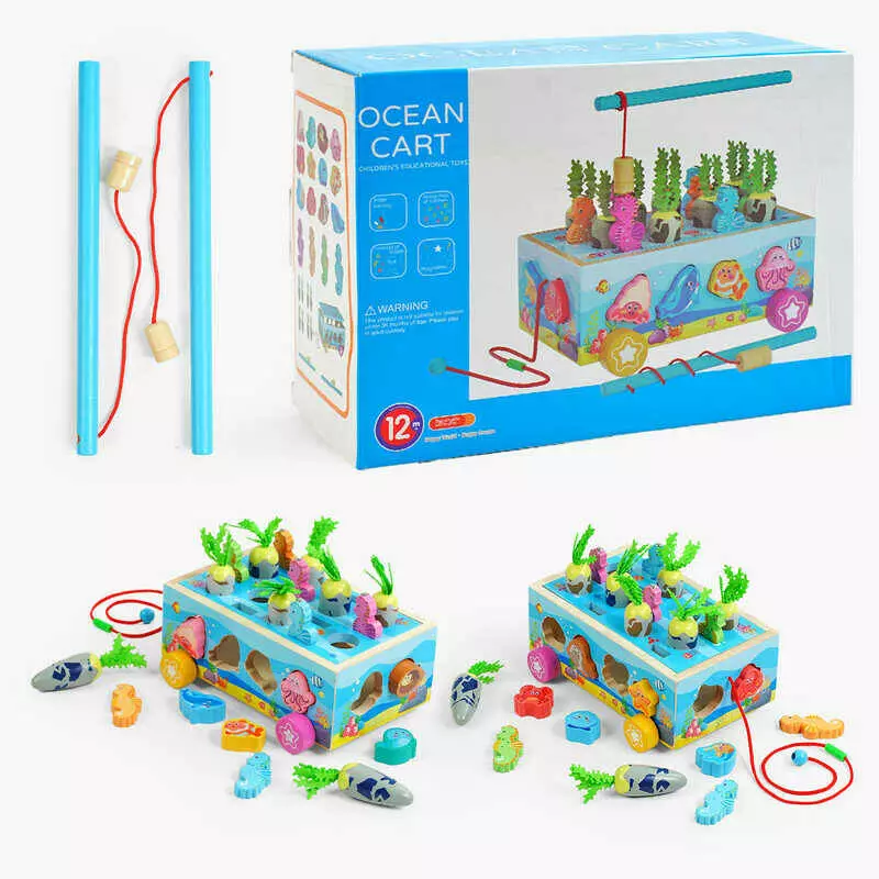Ігровий центр С 62827 (24) “Морський город”, дерев’яний, каталка, магнітна риболовля, сортування за формами, овочі, фігурки, в коробці