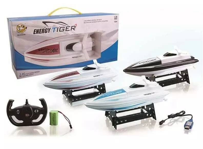 Катер на радиоуправлении S 322 E (24) 3 цвета, аккумулятор 4.8 V, подставка под катер, в коробке