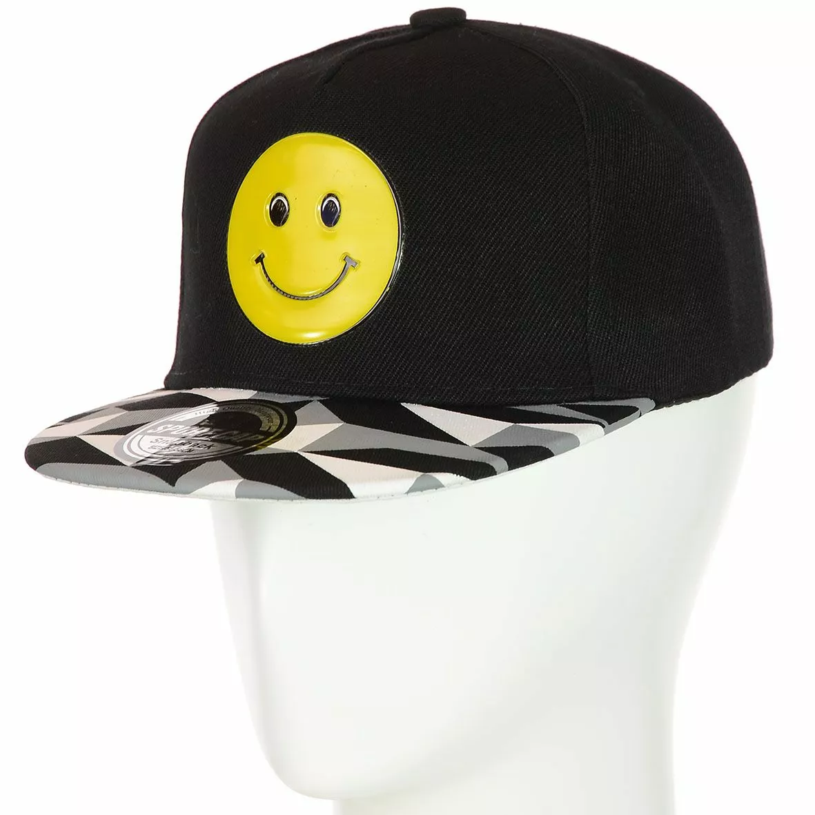 Стильная кепка с прямым козырьком в молодежном стиле. Передняя панель головного убора украшена изображением смайлика и контрастным прямым козырьком. Задняя часть имеет ремешок, который помогает регулировать размер под себя. Модная рэперская кепка подойдет любому человеку и будет оригинальным подарком на любой праздник. Изготовлена из качественного материала, смотрится очень оригинально и стильно.