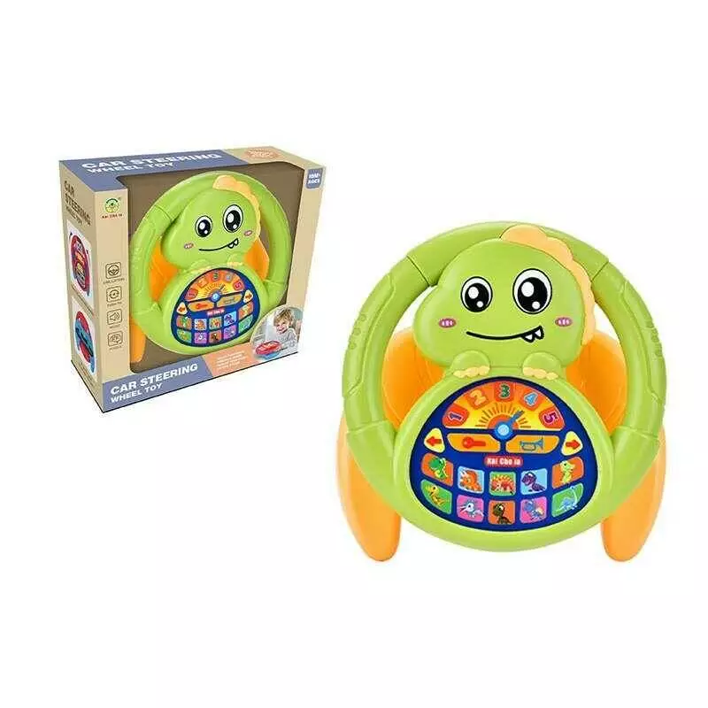 Кермо 2192 E 48-20 (36/2) “Динозаври”, на присосках, звуки, ремінець, мелодії, обертається, поворотники, гудок, на батарейках, в коробці