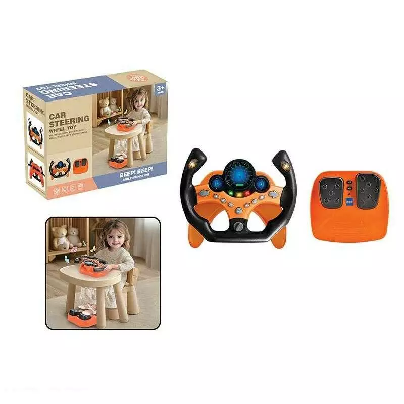 Кермо 2192 E-71 Штрих = 92453 (24) колір ПОМАРАНЧЕВИЙ, звукові ефекти, озвуч. англійською, мелодії, світло, педалі гальма та газу, присоски, в коробці