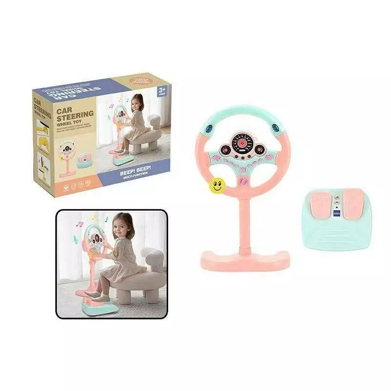 Кермо 2192 E-72 Штрих=92477 (18) колір РОЖЕВИЙ, підставка 34 см, звуки, озвуч. англійською, мелодії, світло, педалі гальма і газу, в коробці