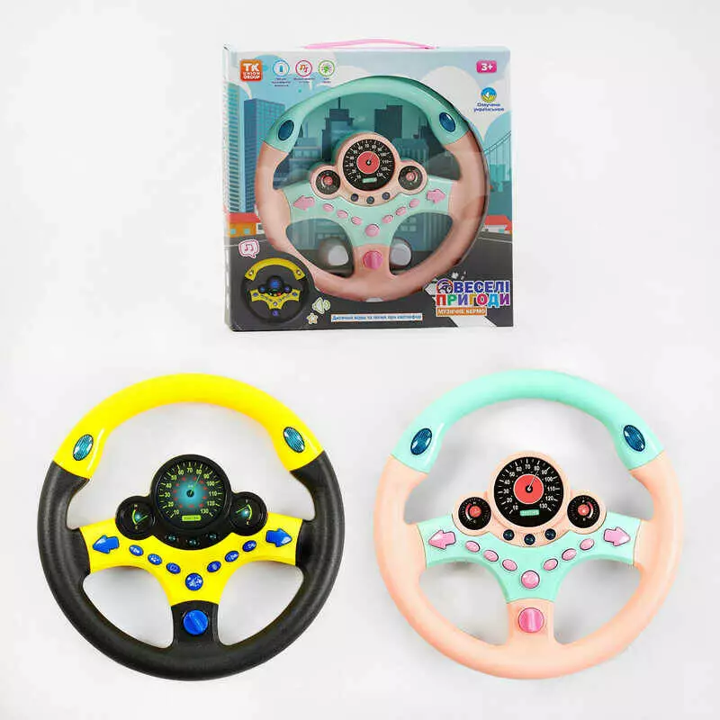 Кермо “Веселі пригоди” 23554 (36/2) "TK Group", 2 кольори, ОЗВУЧУВАННЯ УКРАЇНСЬКОЮ МОВОЮ, пісня, віршик, звуки, підсвічування, в коробці