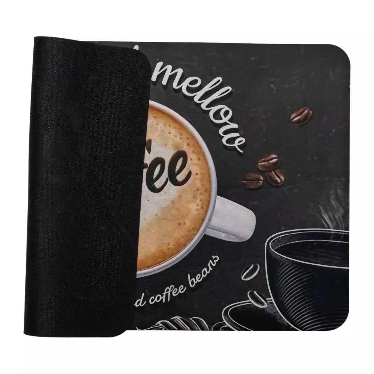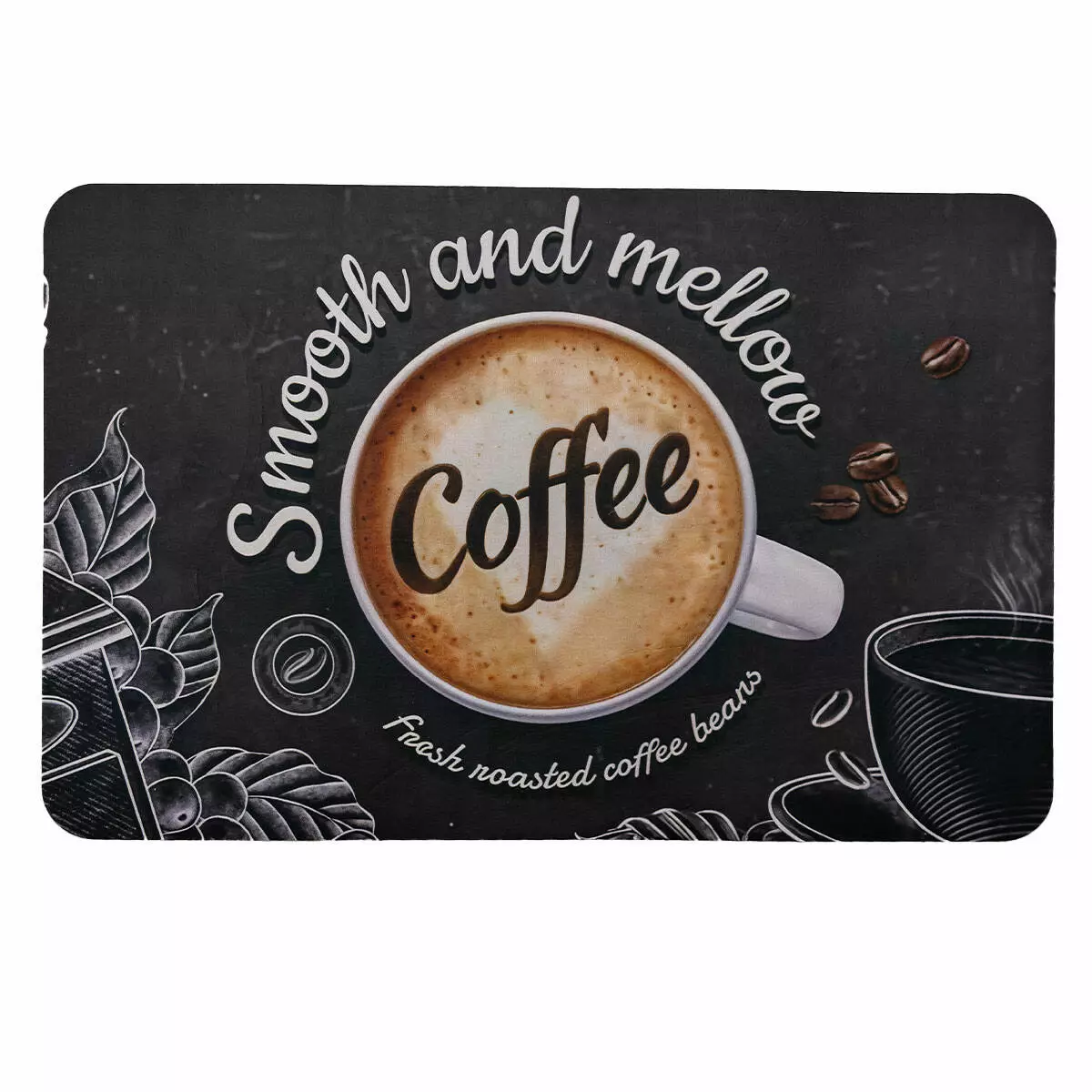 Килимок легко доглядати завдяки міцній діатомітовій основі, яка зберігає свої властивості при щоденному використанні. Його універсальний формат і тематичний дизайн роблять його функціональним та декоративним акцентом, що підкреслює атмосферу затишку і любов до кави на кухні.