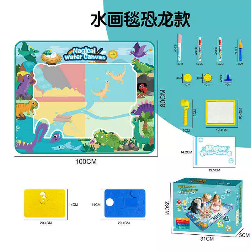 Килимок для малювання водою DM 1820-3 (36) водні маркери, 2 трафарети з цифрами та фігурами, штамп, валик, ємність для води, в коробці