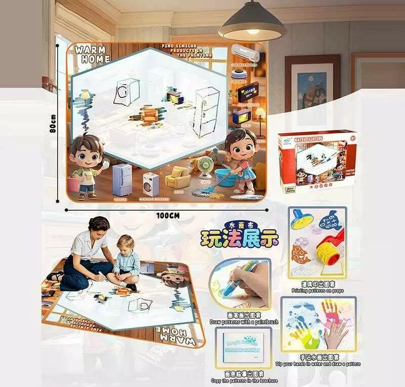 Килимок для малювання водою YYD 0312 (64) 100х80 см, 3 маркери, водяні печатки, трафарети, в коробці