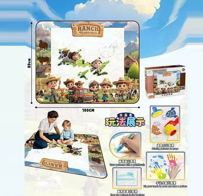 Килимок для малювання водою YYD 0315 (64) 100х80 см, 3 маркери, водяні печатки, трафарети, в коробці