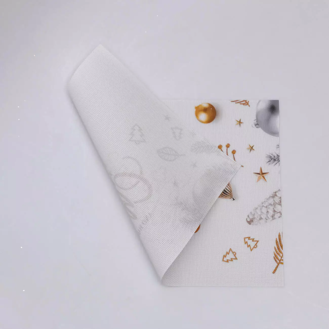Плейсмат із ПВХ зі святковим принтом ідеальний для новорічного та різдвяного сервірування. Покриття стійке до вологи та плям, не вбирає запахи. Тонкий, але міцний матеріал зберігає форму і не ковзає по поверхні. Прекрасно підходить для домашнього використання, ресторану чи кафе, а також як подарунок рідним та близьким.