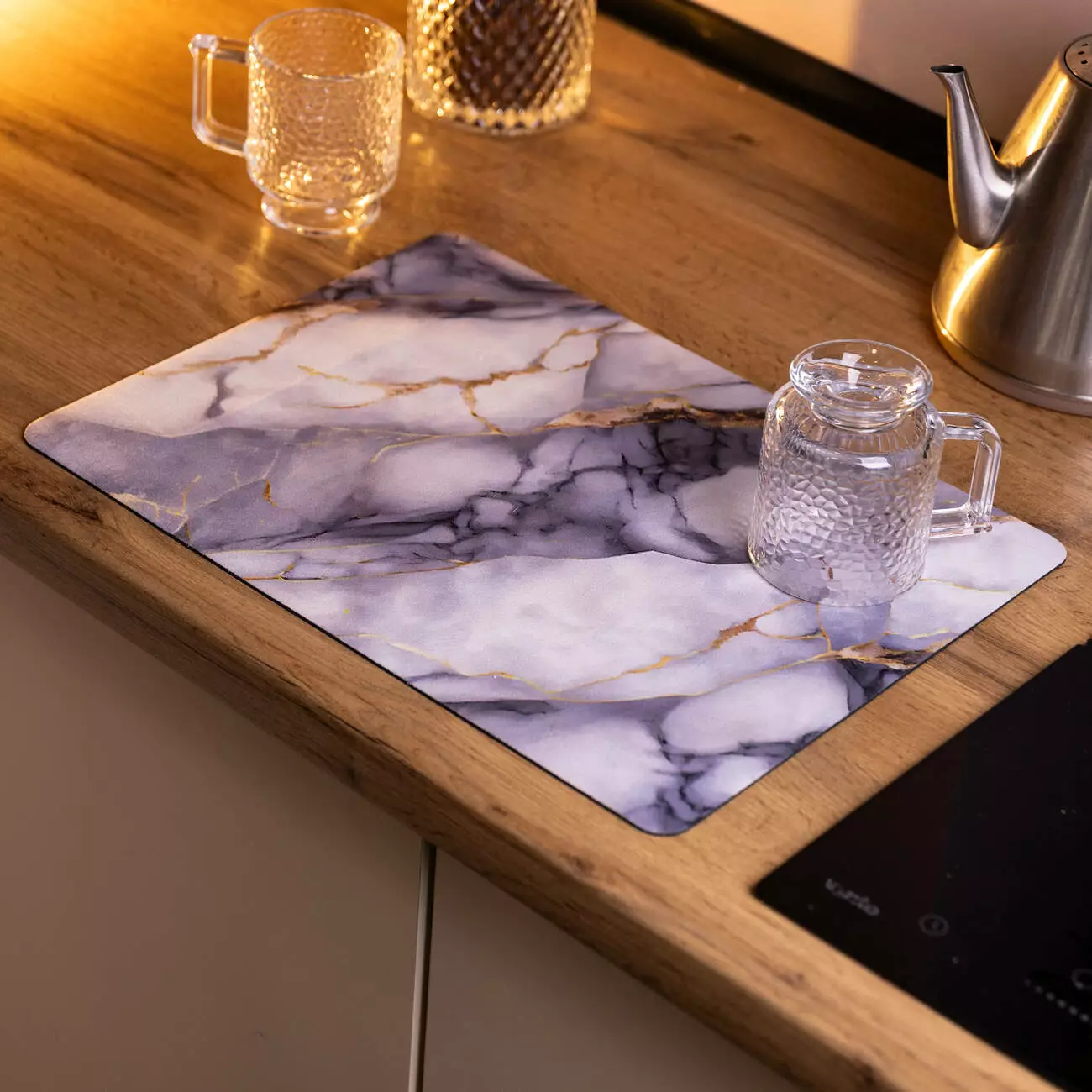 Пориста структура діатоміту сприяє швидкому поглинанню води та її випаровуванню, що допомагає зменшити утворення калюж і водяних слідів. Формат 40*30 см підходить для сушіння тарілок, чашок, склянок і столових приборів, особливо в умовах обмеженого кухонного простору.