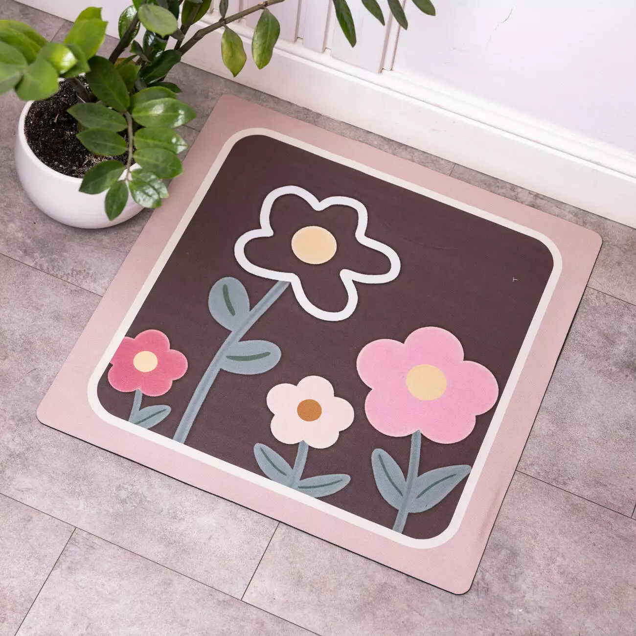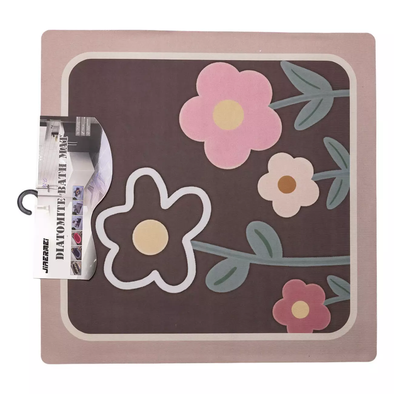 Килимок з діатоміту розміром 58×58 см призначений для щоденного використання у приміщеннях з підвищеною вологістю. Матеріал має пористу структуру, яка забезпечує швидке поглинання. Поверхня залишається сухішою порівняно зі звичайними текстильними килимками, що знижує контакт ніг з вологою підлогою.