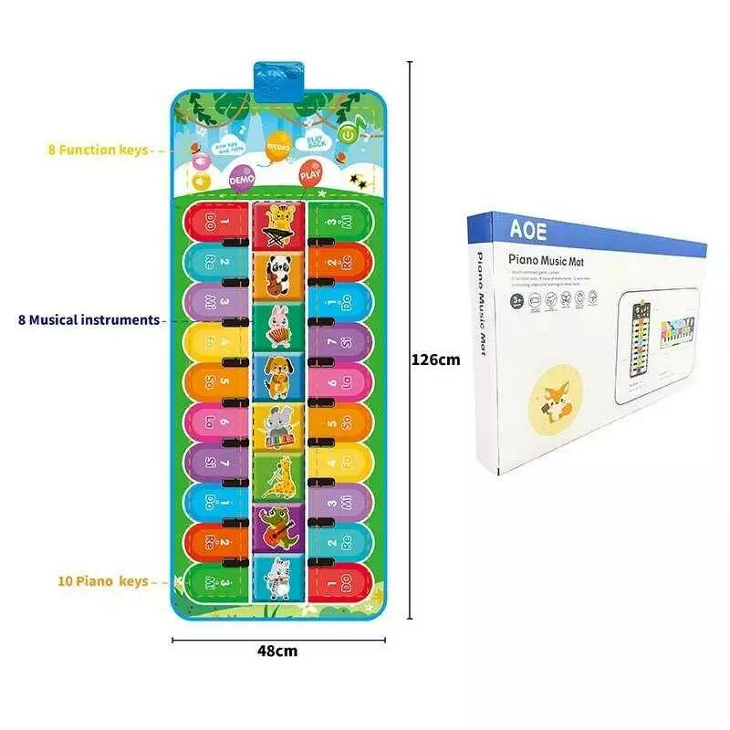 Килимок музичний 638-12 (24/2) 49 х 3 х 125 см, на батарейках, музичні інструменти, ноти, запис, режим пам`яті, музика, в коробці