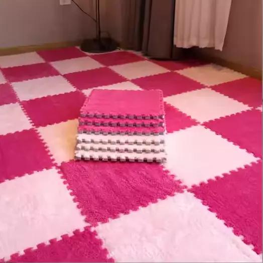 Плюшева підлога-пазл - це модульні плитки для підлоги з EVA-піни з м'яким текстильним покриттям. Кожен елемент (30 x 30 см) оснащений замковими з'єднаннями, що дає змогу легко складати їх у великий килимок будь-якої форми. Плюшева поверхня робить килимок комфортним, теплим і м'яким для підлоги. Ідеально підходить для дитячих кімнат, ігрових зон, місць відпочинку, теплих і м'яких килимків на підлогу.