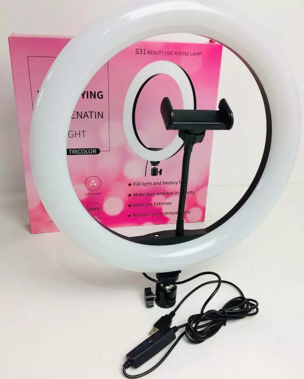 Кільцева LED-лампа S31 (1 кріп.тел.) (кер. на дроті) USB (33 см) (30 шт./ясть)