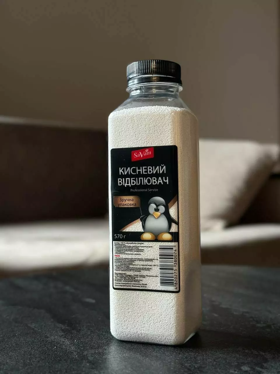 Кисневий відбілювач SaVam у практичній пластиковій пляшці-це ефективний засіб для відюілювання та виведення плям для білих та кольорових тканин та широкого спектру побутового застосування.